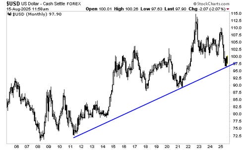As a result of this, the $USD is now sitting on its multi-decade trendline. If it breaks down here, the U.S. could experience another major round of inflation.